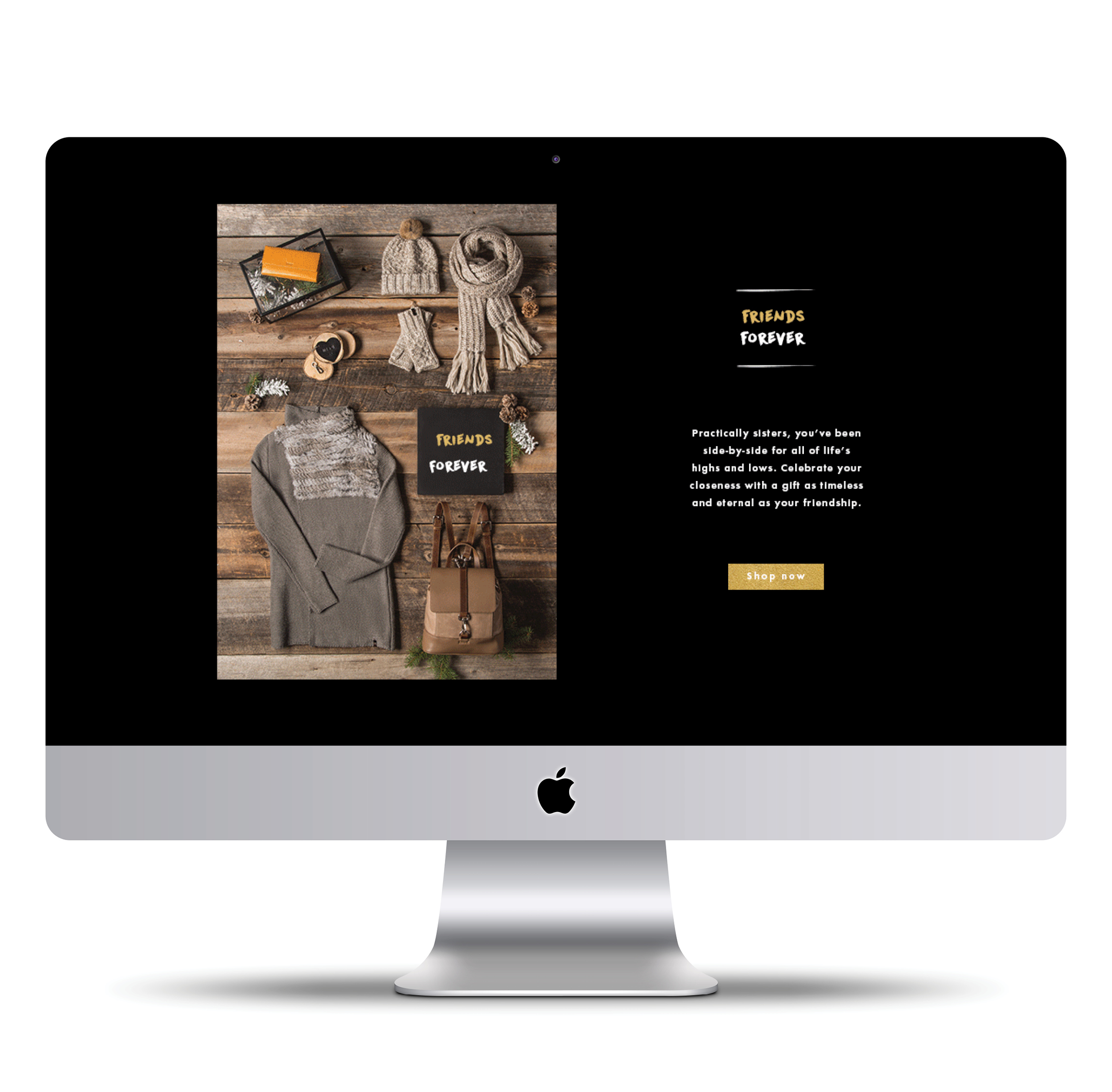 Art direction of Rudsak's 2015 gift guide for print and online: look and feel, photography, animated gifs, micro-site (mobile & desktop), media banners